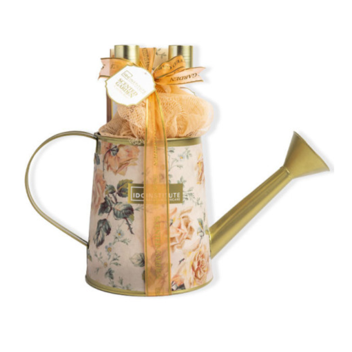 Este conjunto completo incluye gel de ducha 100 ml, loción corporal 100 ml, sales de baño 100 g y una esponja, presentados en una divertida regadera decorada.